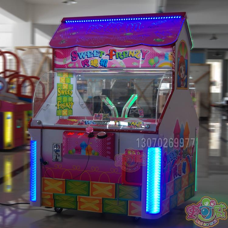 最新款礼品机娃娃机投币游艺挖糖机玩法特点:礼品机类,操控一个小铲车,按动摇杆把铲倒的糖果放到出物口,即可得到糖果。