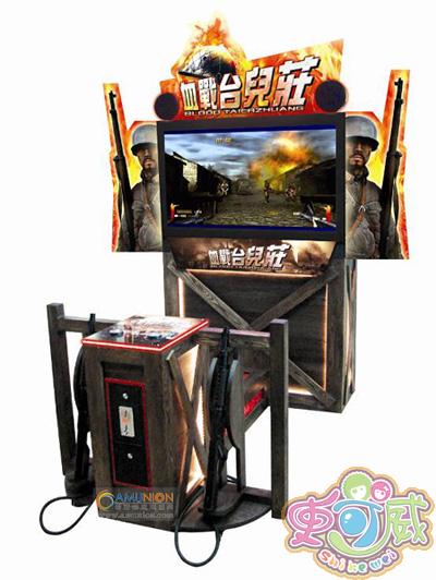 《血战台儿庄》(JL.SPSJ.01)是全球首款以抗日战争为题材的游戏机巨作。并且加上仿真阻击自动步枪技术和全实木豪华机箱设计。高分辨率的3D游戏画面配上47寸液晶显示器, 逼真的实战音效配上低音十足的品牌音响,肯定会让所有的游戏玩家即刻拥有一种身临其境的感觉。