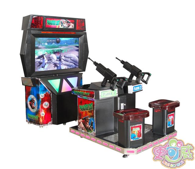 分别有42"47”50"液晶显示屏,画质清晰,可供双人同时并肩作战,震撼机关枪加炮弹,音响效果强烈,真正身临其境感受战场硝烟与锋火连天,枪淋弹雨,惊险刺激.