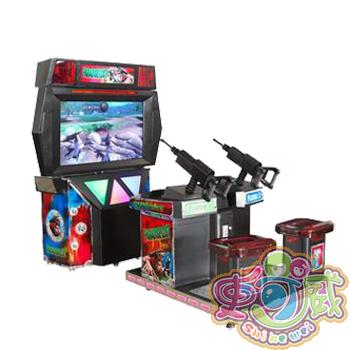 1、选好枪,将币投入对应的投币口,选择游戏.