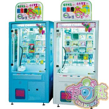 投币后,用摇杆和按钮控制机械杆上下左右行走,看准礼品机里面放置的礼品,对准孔的部位松手,机械杆即可顺利进入孔中,将挡板上的礼品推下,礼品就归你所有了。