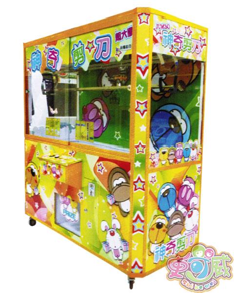 3、通过移动操作杆来控制剪刀,并用剪刀剪断绳子以获得娃娃;